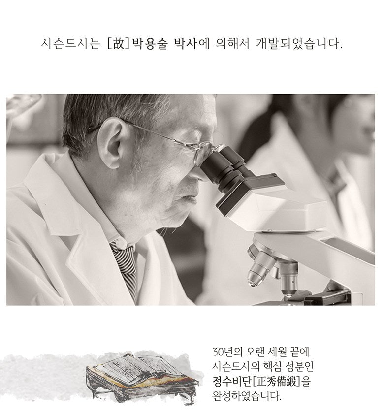 Developed by the late Dr. Yongsul Park, SISEUNDEUSI is a product of 30 years of dedicated research, leading to the creation of its key ingredient, Jeongsu Bidan (正秀備緞). For over a decade, our commitment to quality has remained unwavering, producing the same revered formula for 11 years. This longevity in the market is a clear indicator of our product’s exceptional quality.