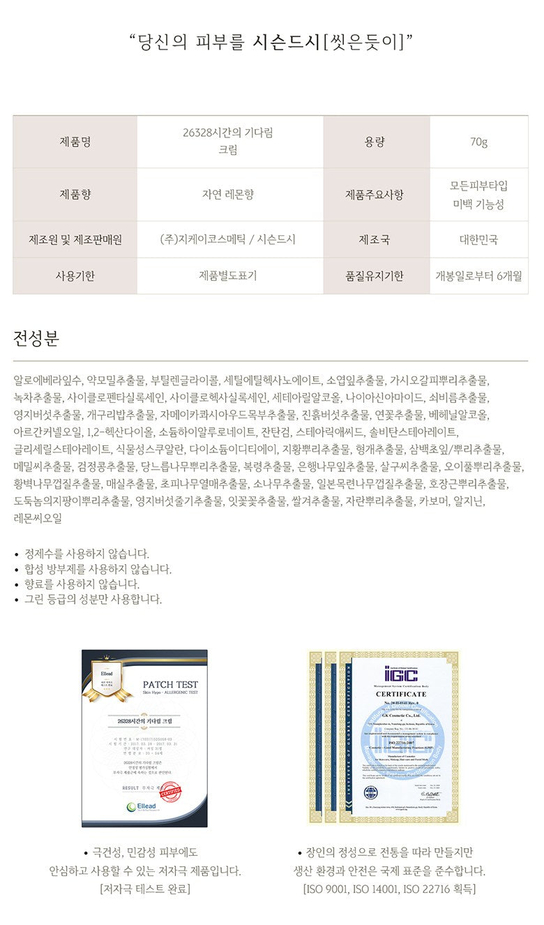 Our cream has been recognized and certified by the Ministry of Food and Drug Safety for its whitening capabilities, ensuring not only moisturization but also a brightening effect on the skin.