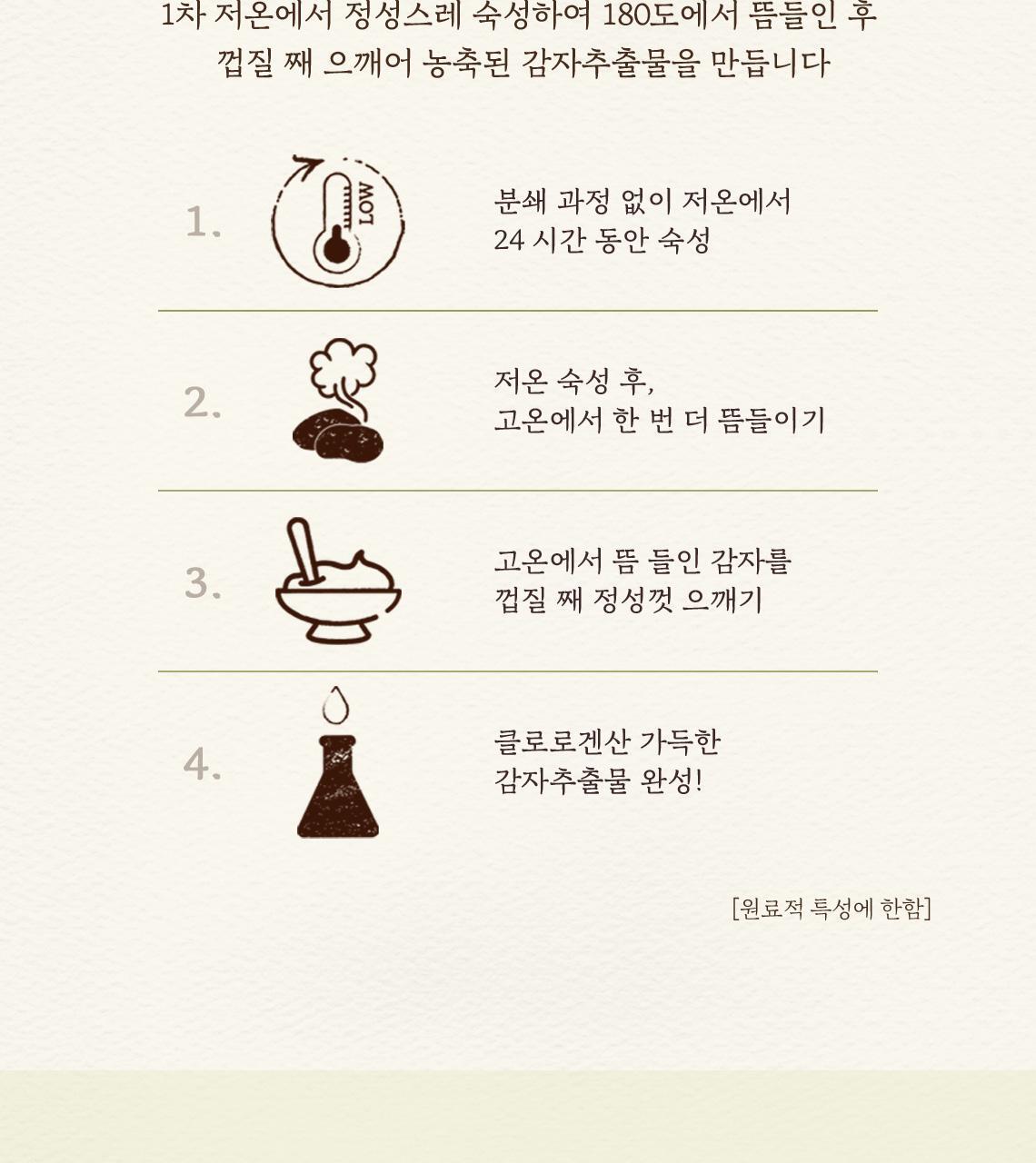 - Nutrient-Rich Potato Extract: Utilizing a specialized extraction method, the potato extract is rich in active ingredients and nutrients, obtained by ripening at low temperatures, followed by steaming at 180°C with the peel on, ensuring maximum efficacy.