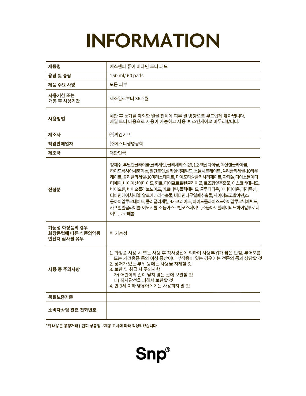 12 reviews for SNP Pure Vitamin Toner Pads 60 Sheets 150ml