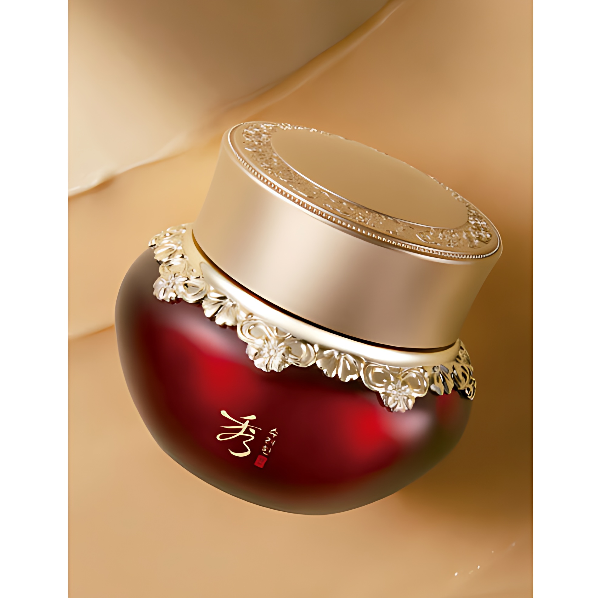 Sooryehan Fermented Cream is a luxurious anti-aging moisturizer that enhances skin firmness while providing deep hydration. Formulated with Jirisan natural ginseng fermented for 100 days and enriched with silver ear mushroom extract, this cream delivers the power of traditional Korean herbal beauty secrets for youthful, radiant skin.