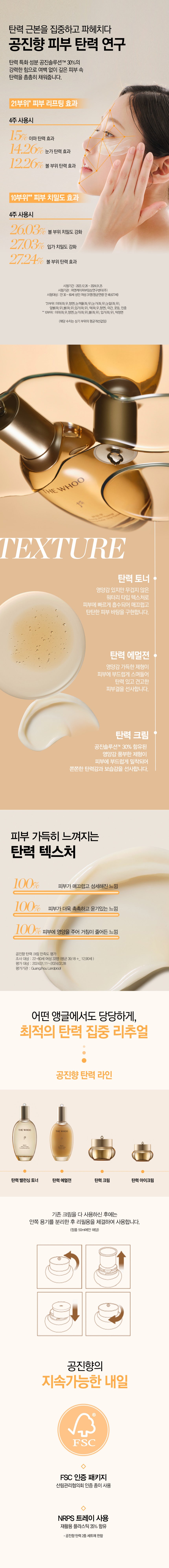 GongJin Solution™: A proprietary blend containing 30% of elasticity-enhancing ingredients, developed through 20 years of skin science research. This solution combines traditional herbal components like Wild Ginseng and Cordyceps Sinensis to nourish and firm the skin, promoting optimal skin balance and a youthful appearance.