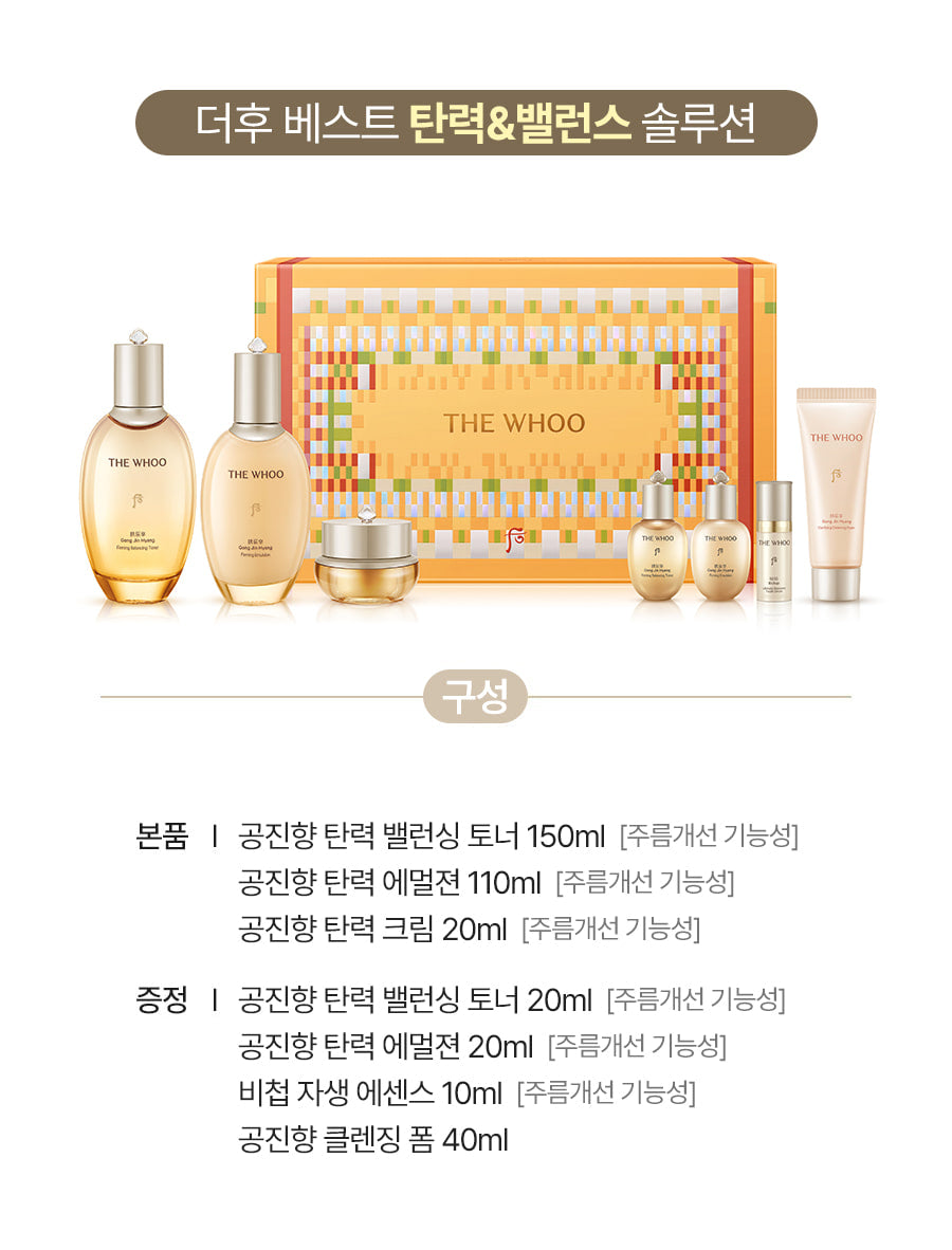 THE WHOO’s Gong Jin Hyang Royal Court 3-Piece Set is a premium anti-aging skincare collection inspired by traditional Korean royal court beauty secrets. This set is designed to enhance skin elasticity, firmness, and overall vitality through the use of herbal ingredients and advanced skin science.
