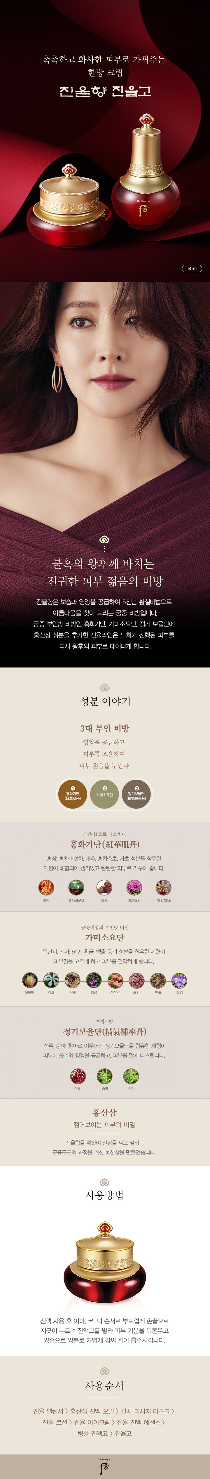 Enriched with Hongsan Ginseng, a specially processed red ginseng, this cream supports the regeneration of tired skin, helping it to flourish with the vitality of a queen’s complexion.