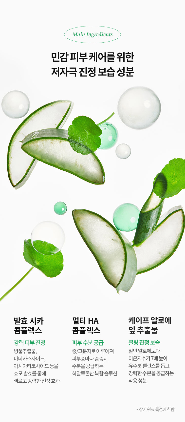 - Fermented Centella Asiatica Complex: A blend of Centella Asiatica extract, Madecassoside, and Asiaticoside, known for their strong soothing properties.