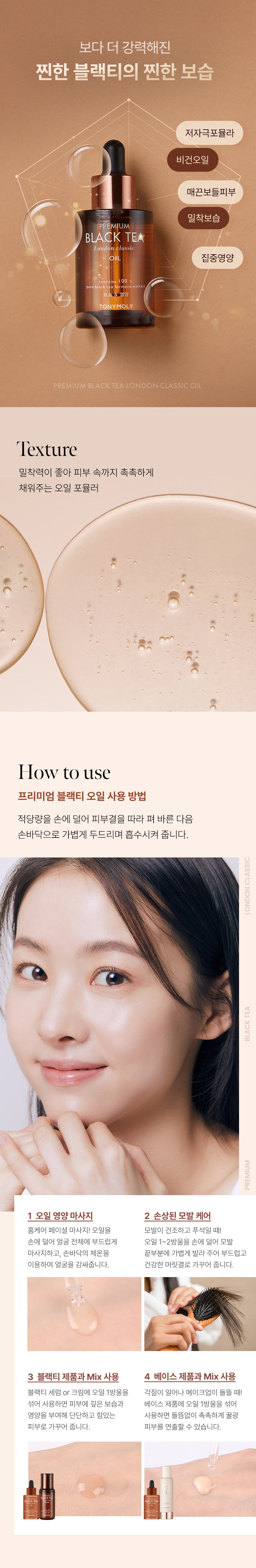 During my London stay, I stumbled upon TONYMOLY’s Black Tea Oil. As the rain poured outside, this velvety elixir revived my tired skin—it felt like a cozy hug! My urban complexion drank it up instantly and bloomed with moisture. Truly reminiscent of British teas’ warmth on rainy afternoons!