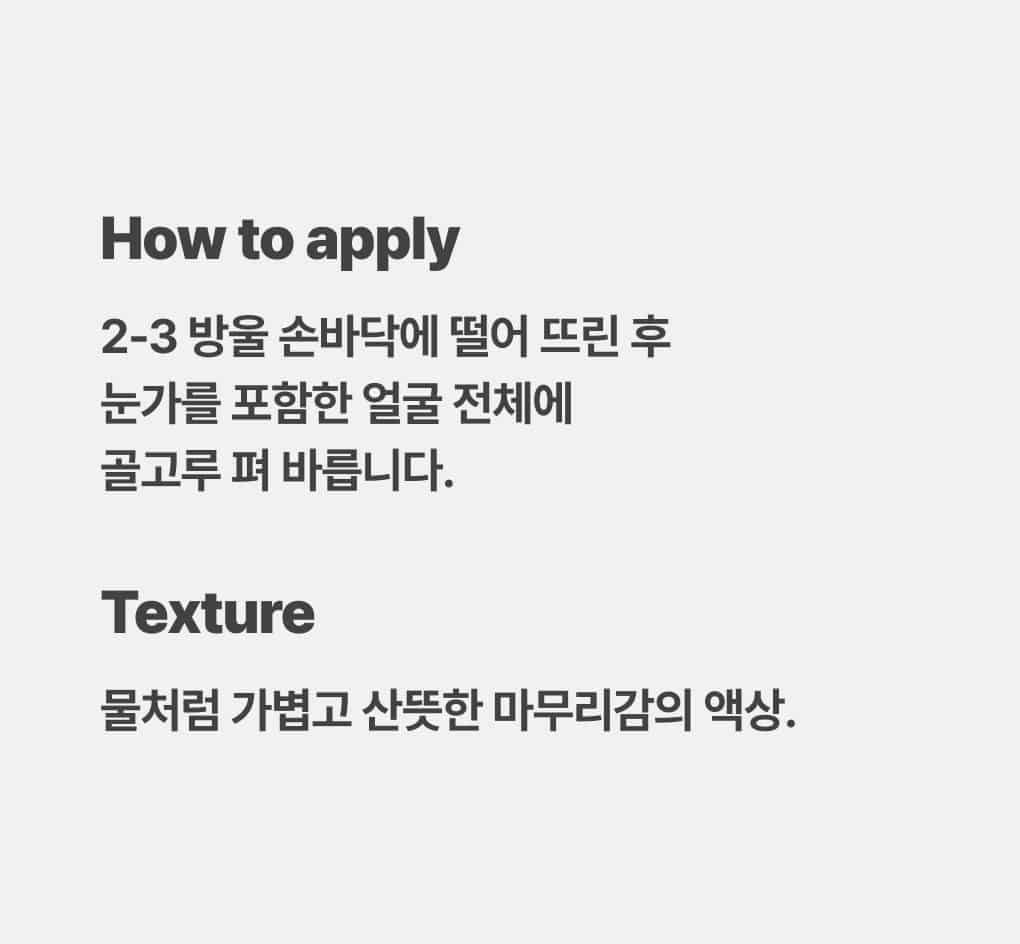 * Liquid texture with a light, refreshing finish like water