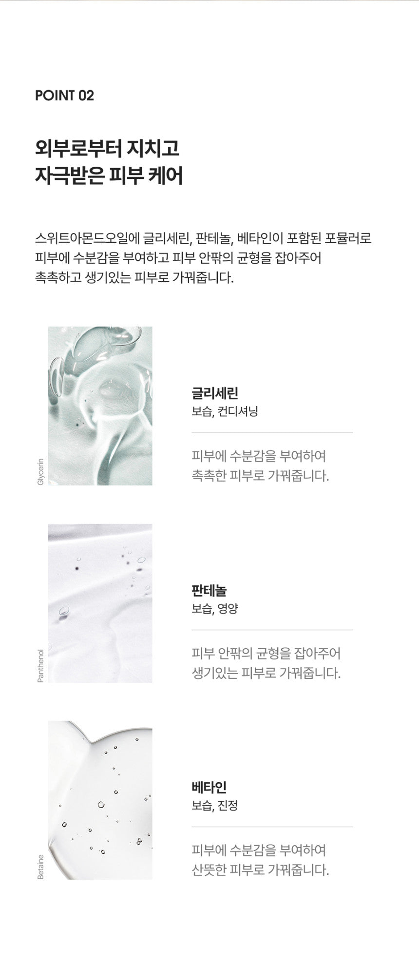 The inclusion of glycerin, panthenol, and betaine delivers deep moisturization, calms irritated skin, and maintains a healthy moisture balance inside and out.