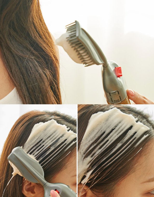Achieve seamless and comprehensive coverage, especially for new hair growth. For newly grown root areas, dispense the rich foam directly onto the dyeing comb and apply it to the roots first. This technique ensures even coverage and a natural-looking transition.