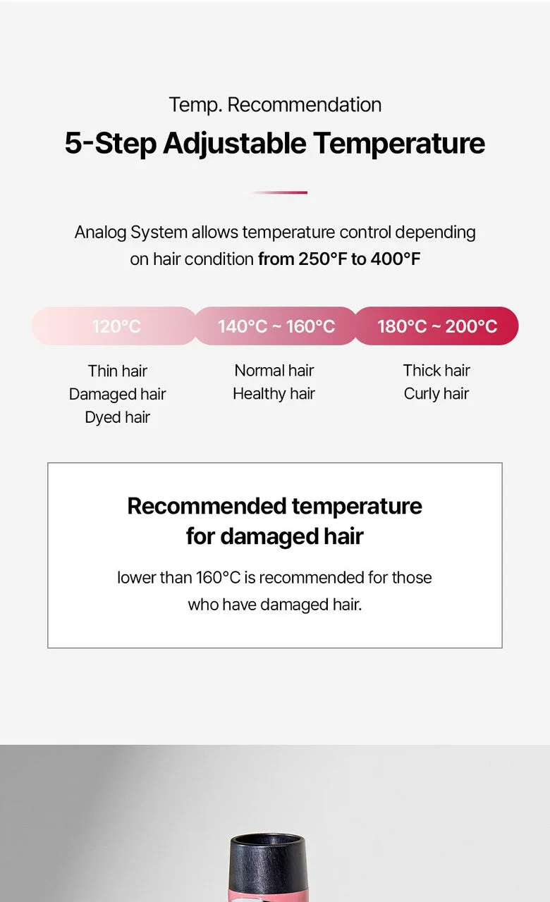 Adjustable in 5 levels (120°C to 200°C) to suit various hair types: