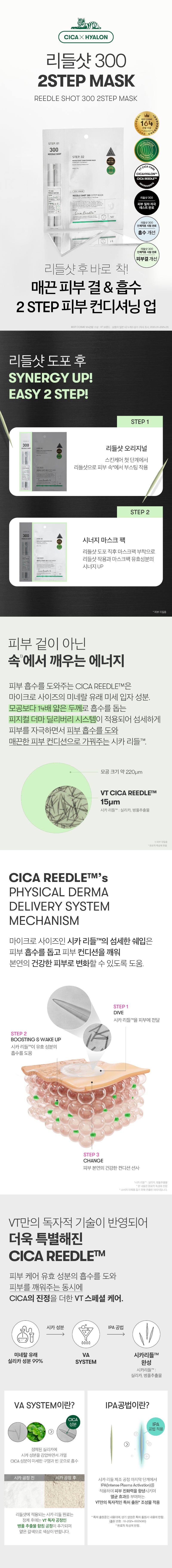 Enjoy a refreshed, revitalized complexion with the VT Cosmetics Reedle Shot 300 2Step Mask Sheet, your new go-to for at-home professional skincare.