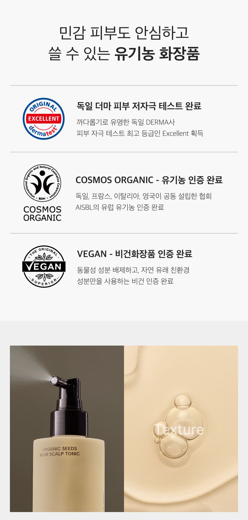 - Organic Seeds: Fermented seed extracts for hair vitality