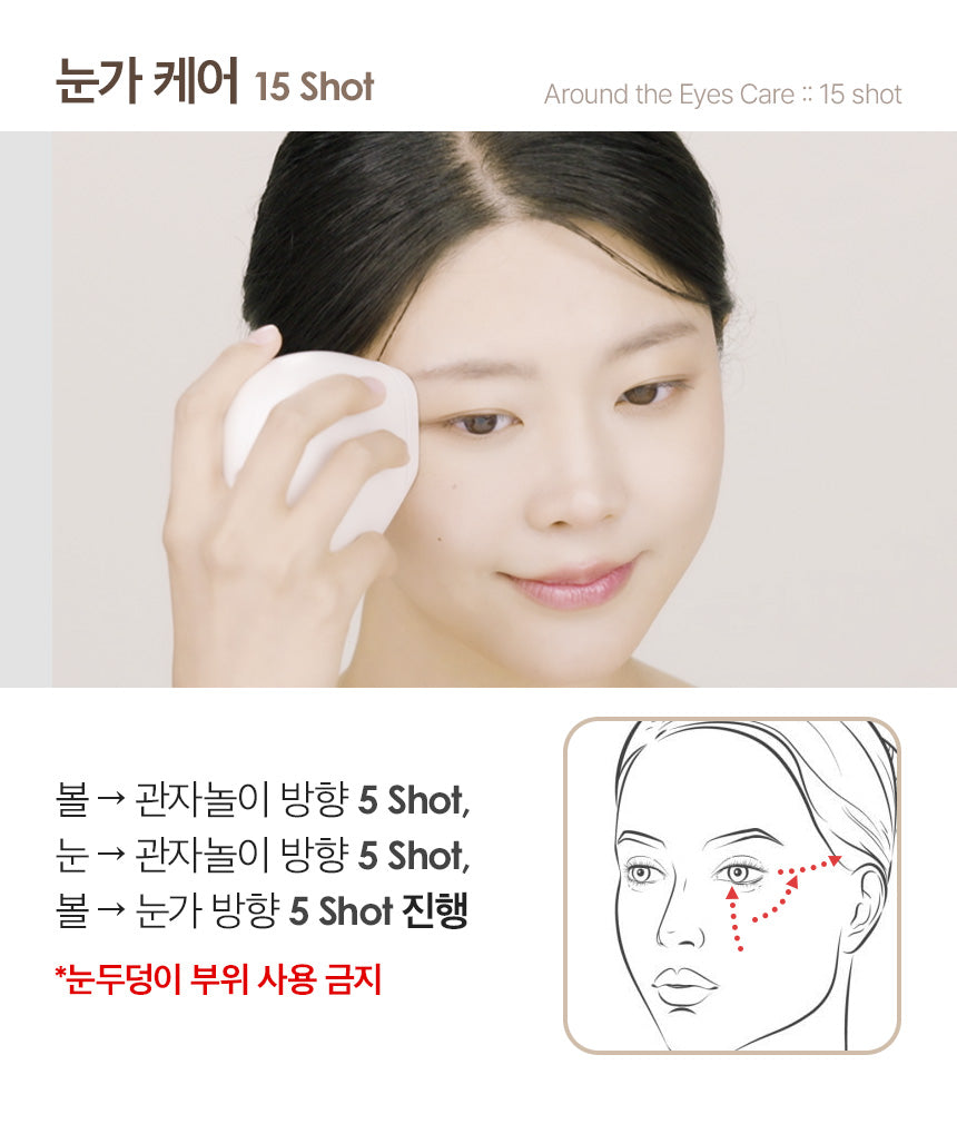- Divide into four sections, excluding the area around the uvula, and perform 20 shots per area from the inside to the outside.
